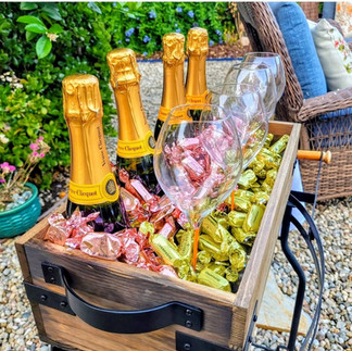 Pairings: Include gourmet snacks such as chocolates, cheeses, or crackers to complement the champagne.